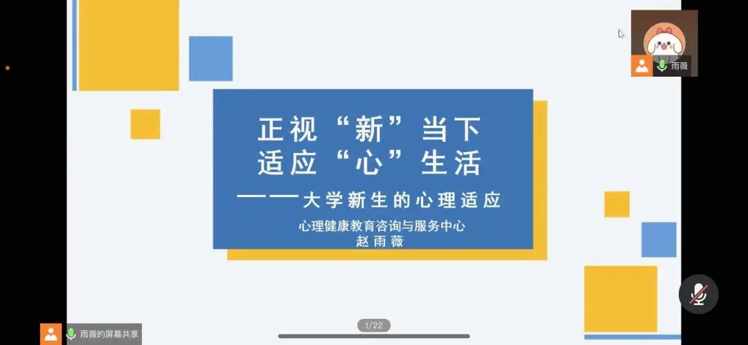 9月10日上午9:00,2021级本科新生入学教育系列活动之心理健康讲座于线上顺利举行。为了促进新生的心理健康教育普及,给予新生思想心理关怀,引导他们积极主动探索良好的人际关系,更好融入校园生活,永利yl23411邀请到心理健康教育咨询与服务中心赵雨薇老师做主题讲座。此次讲座主题为:正视“新”当下,适应“心”生活。赵雨薇老师用平易近人的语言开篇,从社会因素、体质因素、素质因素三个方面对老员工普遍存在的心理问...