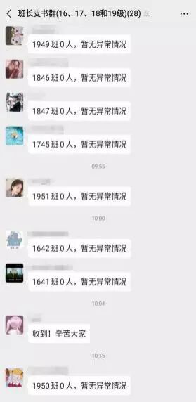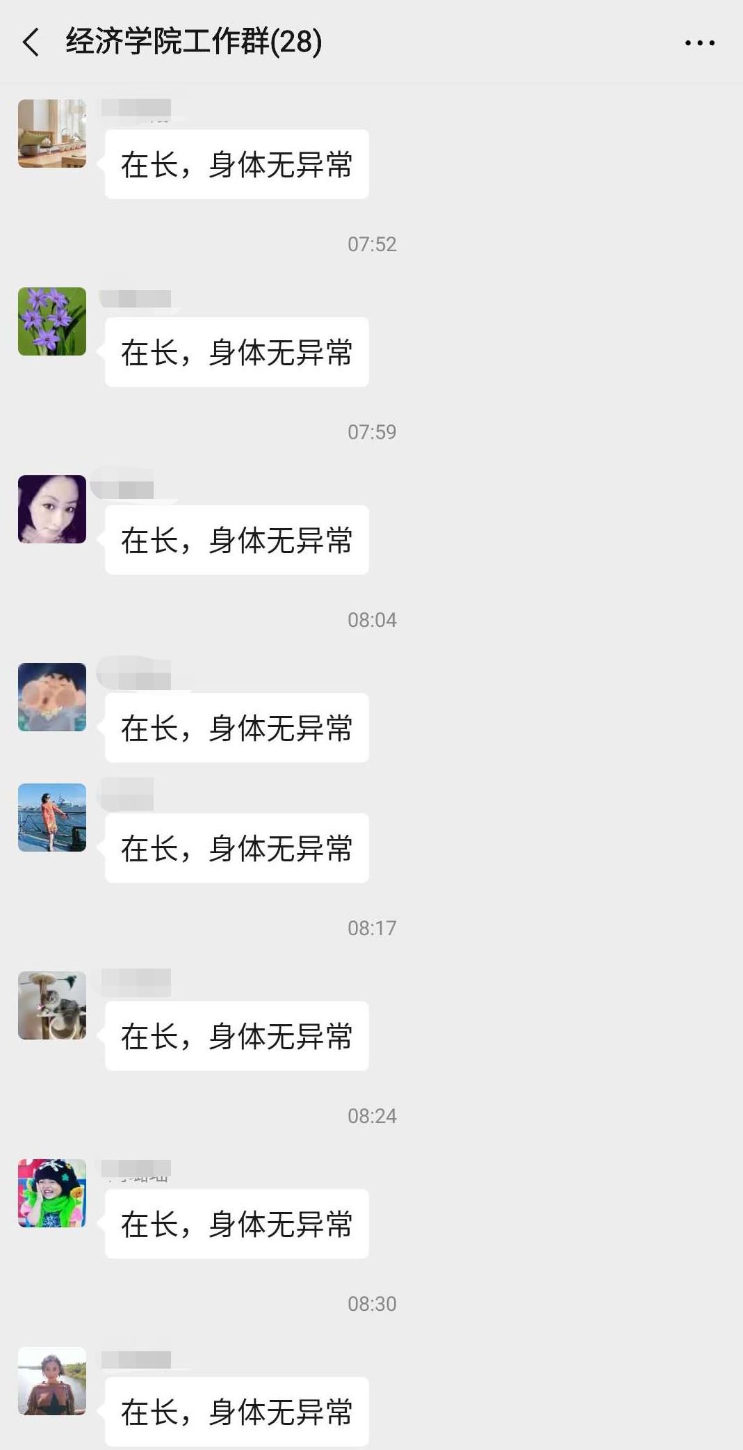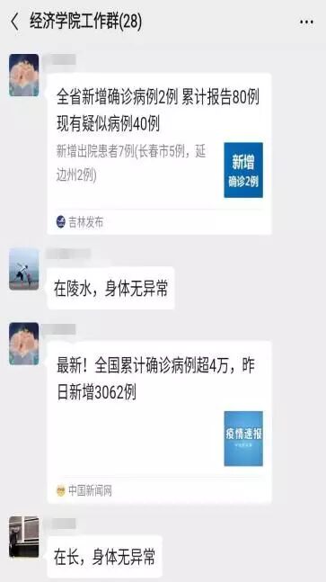 2、尽早报告。要求全体师生每天在微信群向组织上报当日体征状况及人员动向;