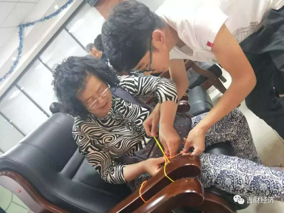 编织端午节手链:志愿者通过手把手的方式教老人编织,即使过程有些复杂,但每名志愿者耐心讲解,活动中老人也积极参与,其乐融融。