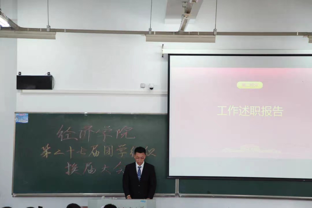 大会第二项,第二十六届员工会执行主席王泽源、员工党支部负责人韩帅、团委副书记刘佳宜作工作述职报告。主要汇报了这一学年期间各部门的员工工作,总结了各部门在日常工作和举办活动中的优点与不足之处,分享了通过进行相关的员工工作所收获的经验教训,并阐述了对部门的未来展望,希望新一届员工部门负责人能够及时发现问题并高效解决,营造团结友好的工作氛围,更好地协助老师,服务同学。