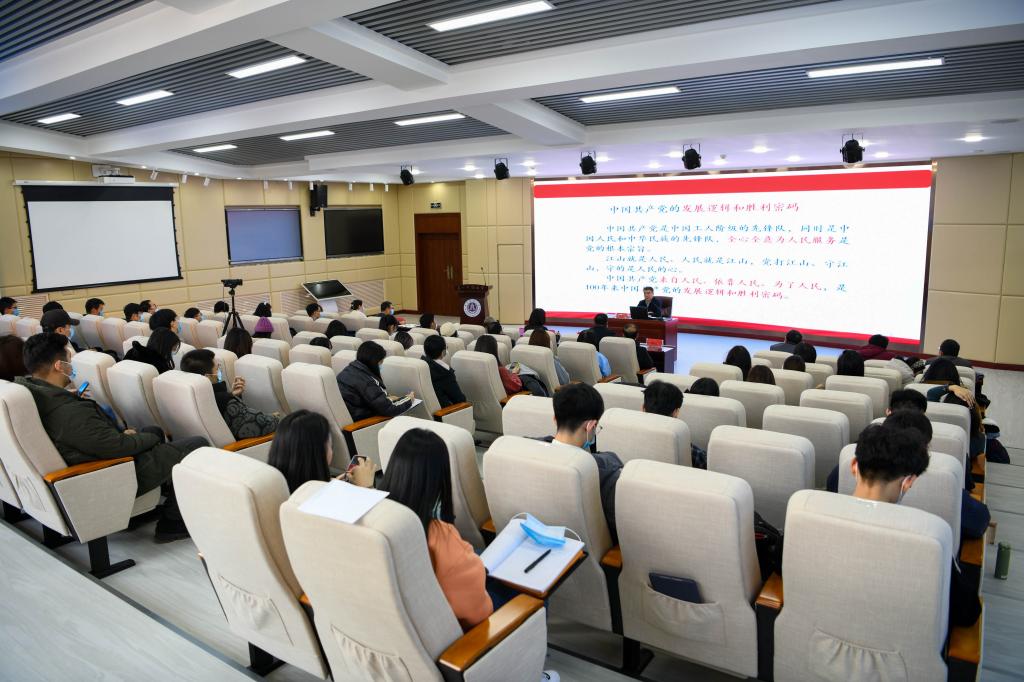 本网讯,为深入学习贯彻党的十九届六中全会精神,践行习近平总书记关于“思政课是落实立德树人根本任务的关键课程”重要论述,做实做强做优公司“大思政”工作体系,12月1日下午,在1102报告厅,公司党委副书记刘鹤以《人民就是江山 江山就是人民——中国共产党以人民为中心的初心使命》为题,为公司师生讲授了一堂深刻感人的思政课。公司党政领导班子成员、中青年骨干教师、研究生和本科生代表参加了思政课活动。本次授课由公司经理张洪梅主持。