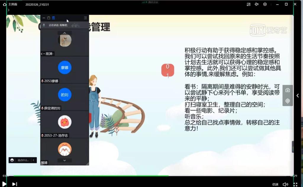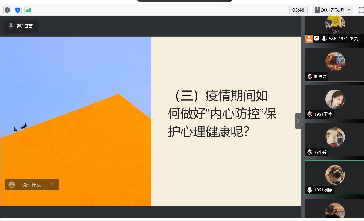 此次班会通过宣传普及心理健康知识,提升了永利yl23411员工的自助互助意识和能力,引导全体同学自我探索,以一颗健康向上的心去应对学习,应对生活,应对未来。