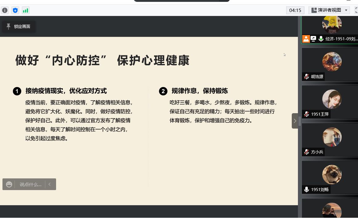 各班心理委员向同学们普及心理健康知识,宣传拥有一个健康心理的重要性。
