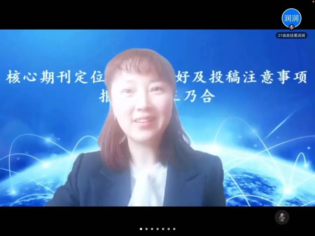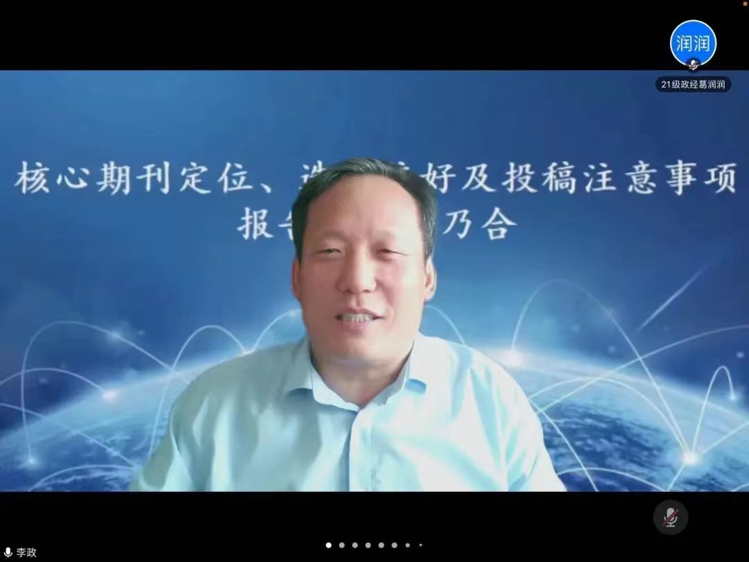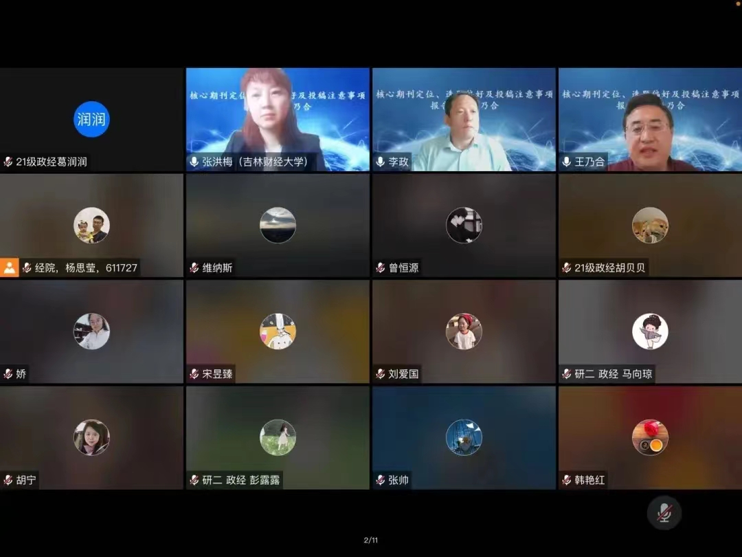 为切实加强永利yl23411与知名高校相关院所之间的学科联系,进一步提升科研团队学术水平及在知名期刊的投稿刊发率,5月19日上午10点,公司永利yl23411和吉林大学中国国有经济研究中心联合举办了学术系列讲座首场报告:学术论文写作与指导。南开大学永利yl23411《南开经济研究》编辑部主任王乃合博士,通过腾讯会议作了题为“核心期刊定位、选题偏好及投稿注意事项”的学术报告。吉林大学中国国有经济研究中心和吉林大学永利yl23411师生、公司永利yl23411全体教师和研究生,其他公司部分师生参加了报告会。报告会由公司永利yl23411经理张洪梅主持。