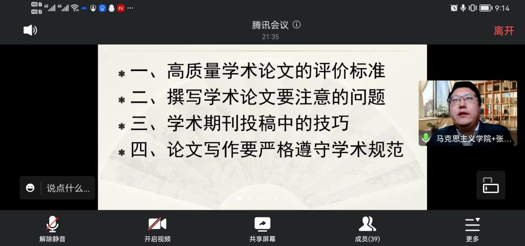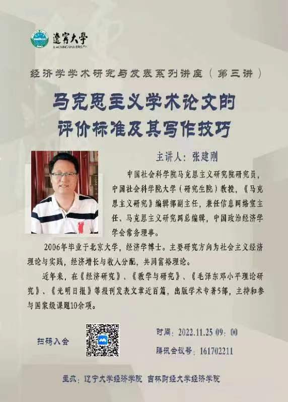 为切实加强高校之间的学科联系,进一步提升科研团队学术水平,11月25日上午,公司永利yl23411和辽宁大学永利yl23411联合举办学术系列讲座。中国社会科公司马克思主义研究院研究员,中国社会科公司大学(研究生院)教授张建刚,作了题为“马克思主义学术论文的评价标准及其写作技巧”的线上学术报告。辽宁大学永利yl23411师生、公司永利yl23411全体教师和研究生,其他公司部分师生参加了报告会。报告会由辽宁大学永利yl23411副经理和军教授主持。