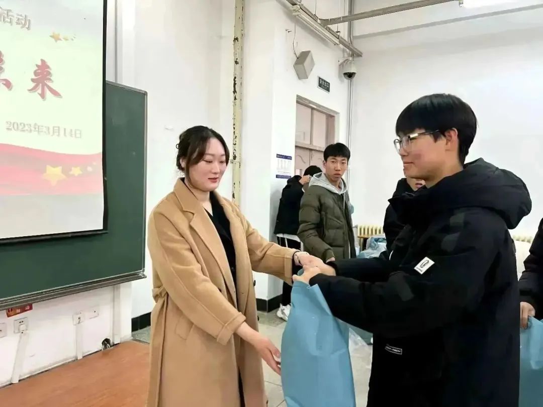 活动中,李老师、骆老师、谷老师以及院员工会学业保障部成员们为同学们发放了爱心物资并向同学们表达了亲切问候和深切关怀,希望大家能安心学习,用双手为自己争取到更好的明天。