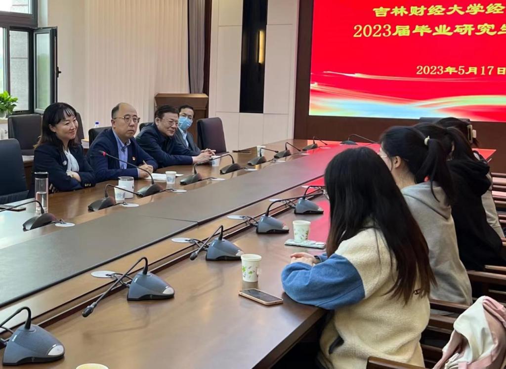 为全面学习贯彻习近平新时代中国特色社会主义思想,深入学习贯彻党的二十大精神,落实《吉林省研究生教育质量提升工程(2022-2025年)实施方案》,深入推进“育人立校”工程,促进公司研究生教育高质量发展,为服务国家和吉林省重大战略需求提供强有力的人才保障支撑。恰逢2023届研究生顺利通过毕业论文答辩,5月17日,永利yl23411在双创中心B435会议室举行2023届毕业研究生就业经验交流座谈会。公司党总支书记竭岸扬、经理张洪梅、副经理刘艳龙、副书记李萍、导师代表梁洪学老师、王辉老师以及全体研究生参加了座谈会。会议由经理张洪梅主持。