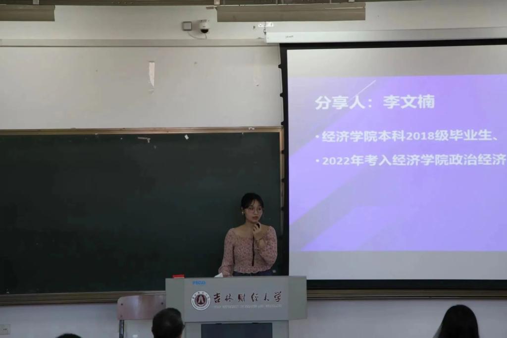 分享会上,各位优秀毕业生从自身经历出发,分享自己在刚刚步入大学时的感受,告诉同学们应如何克服消极情绪,也给同学们在大学期间的生活和学习提出了自己的想法建议,同时他们也分享了自己考研的相关经历和感受,鼓励大家尽早做好个人规划,根据自己的特长、优势和未来发展方向确定考研专业与院校;在高效学习的同时也要持续做好心态调整,保持自己的节奏,争取在未来能够有更好的发展。没来到现场的优秀毕业生也以线上的方式为新生们做出经验分享。