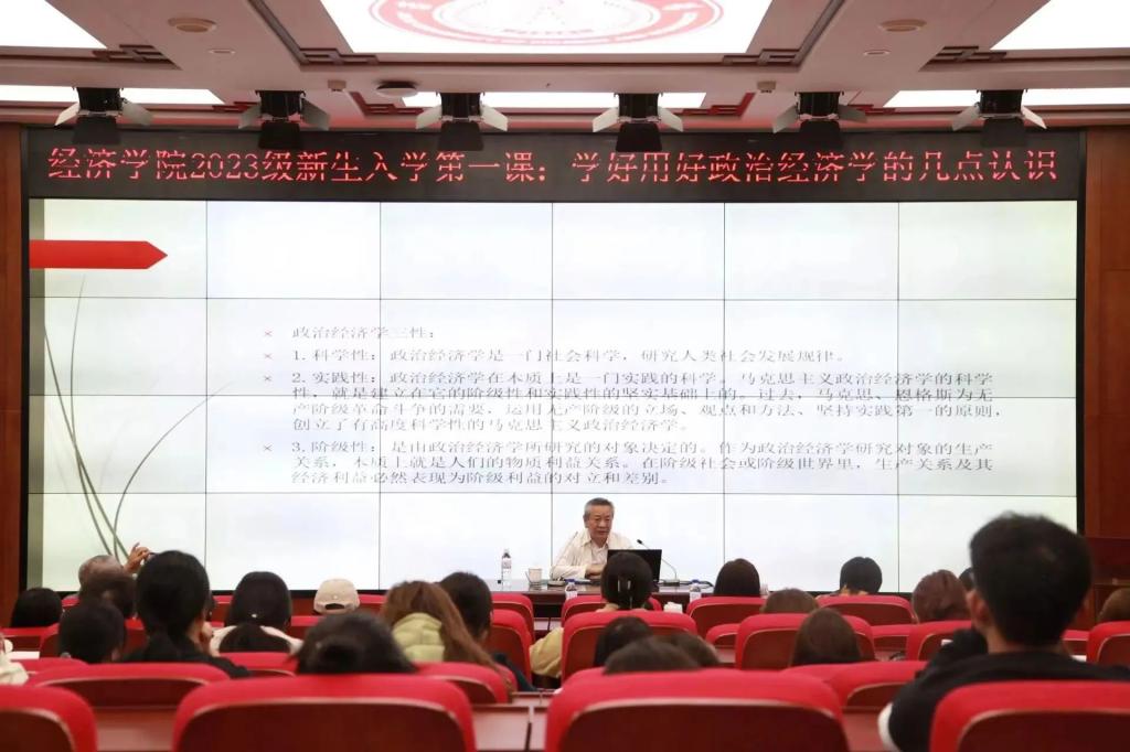 为进一步学习贯彻党的二十大精神,增强学好用好政治经济学的主动性和自觉性,9月25日上午,永利yl23411邀请公司原董事长宋冬林教授到第一教学楼1202报告厅作了题为“学好用好政治经济学的几点认识”的学术报告。这也是永利yl23411持续多年“老董事长新生第一课”的教学安排。永利yl23411全体教师、公司马克思主义经济学研究中心和全国中国特色社会主义政治经济学研究中心部分教师、永利yl23411本科生和研究生聆听了报告会。报告会由永利yl23411副经理刘艳龙主持。