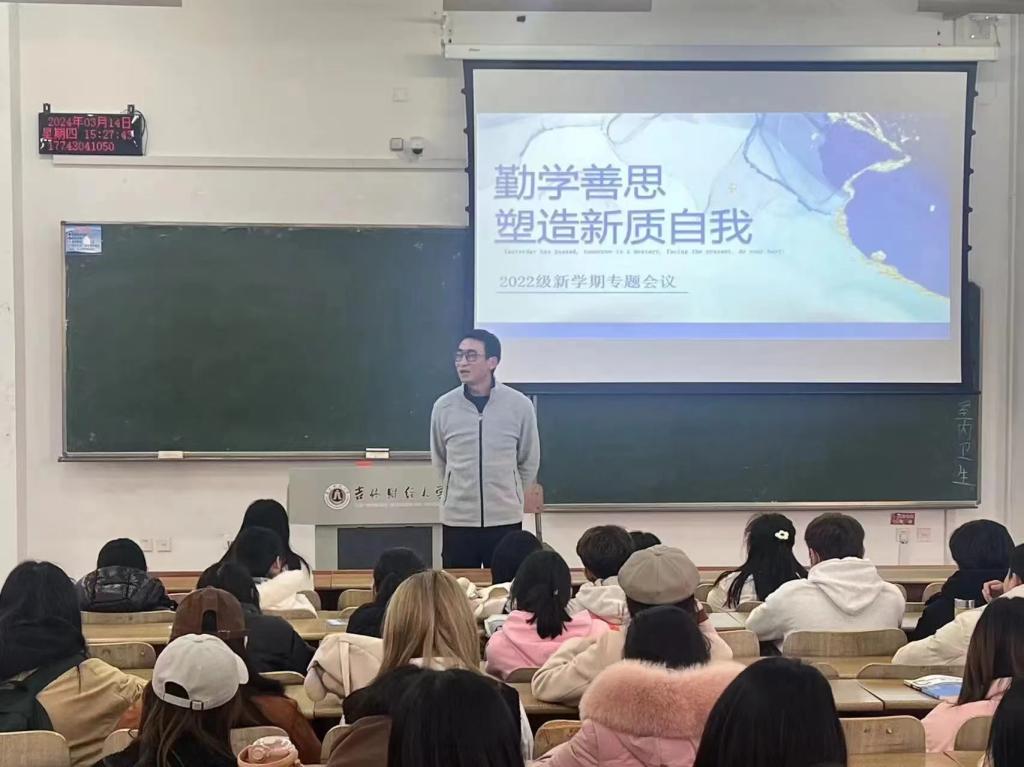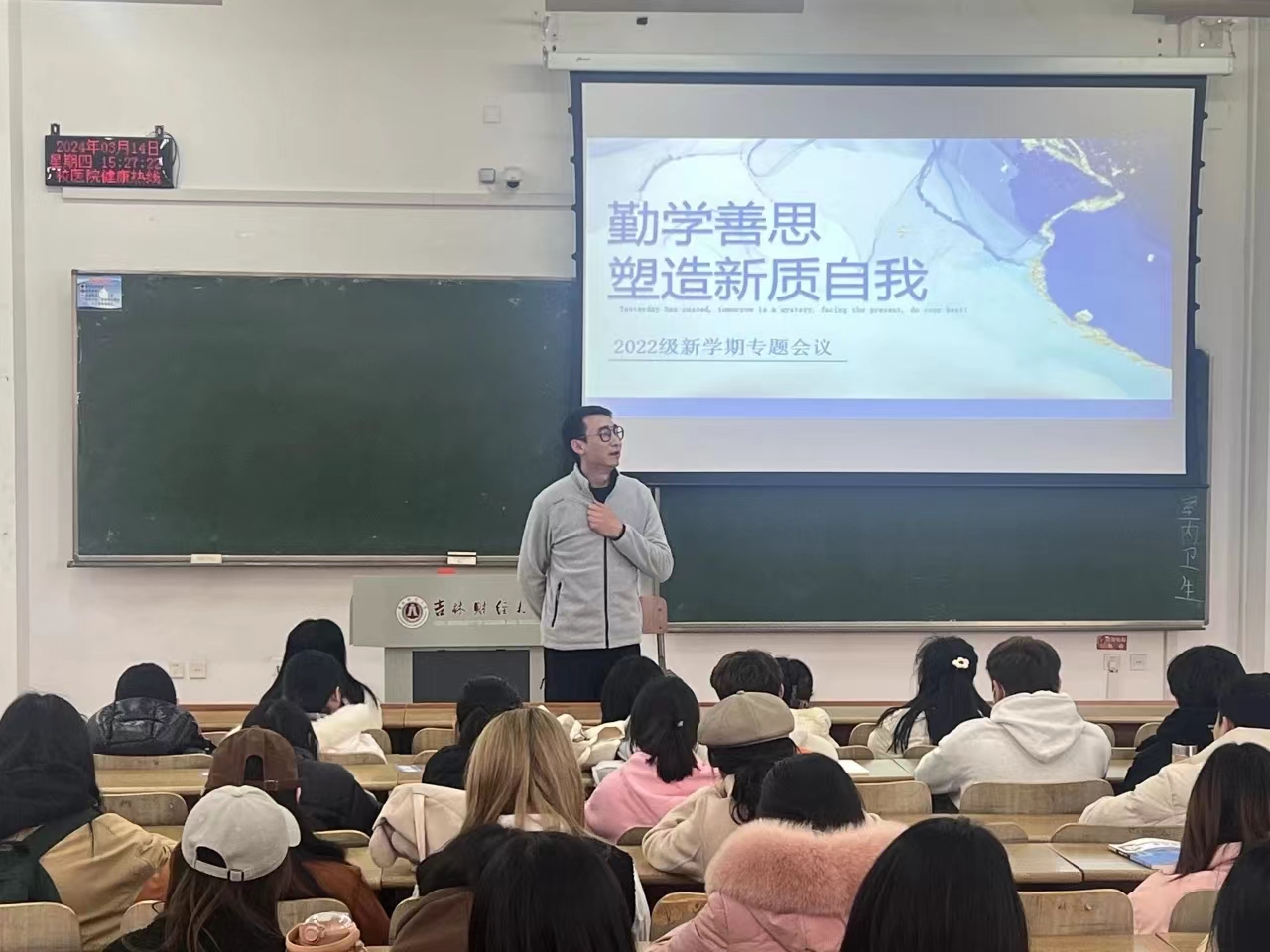 2024年3月14日,永利yl23411习近平经济思想理论学习小组全体员工以及2022级全体本科生在第一教学楼1406教室举行了“勤学善思 塑造新质自我”专题学习活动。永利yl23411团委书记、本科生党支部书记骆鑫在学习会议上做了专题分享。他从经济与产业等维度解读了新质生产力的重大意义,对比分析了美国和德国等先进国家的创新驱动发展历程,畅谈了新质生产力未来发展趋势,并与同学们探讨了“sora会影响哪些行业,普通人怎么应对?”“新质生产力是促进经济转型的有效方式”“当代老员工应如何在学习中塑造‘新质’自我”等话题。