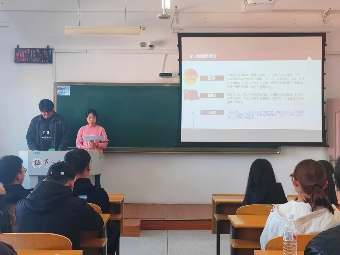 首先,团委副书记蔺勃宏介绍了中国共产主义青年团的性质、历史沿革、团徽、团旗、团歌等基本知识,中国共产主义青年团是中国共产党领导的先进青年的群团组织,是中国共产党的助手和后备军。最后,团委副书记燕禹霖介绍了团员的权利和义务以及入团的意义,新时代青年应积极加入共青团,不断扩展自己的视野和知识面,实现个人价值与社会价值的统一。