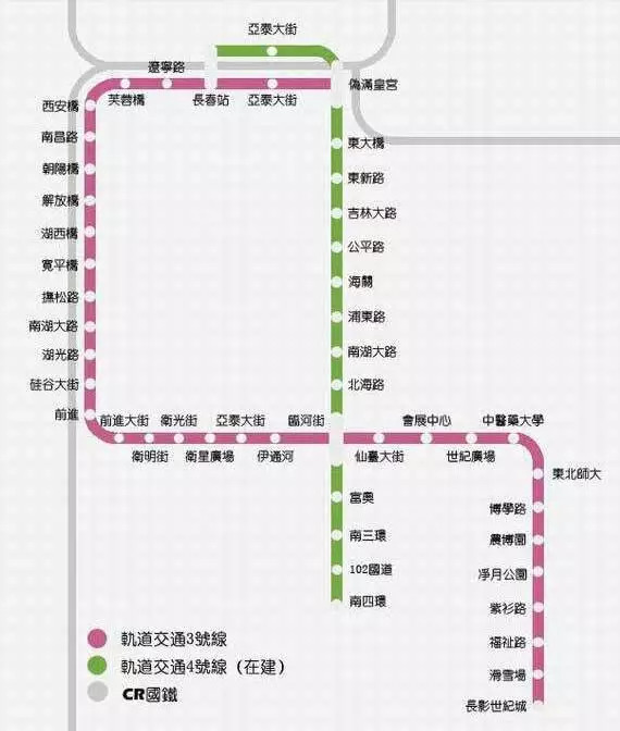 长春新开地铁一号线,可在长春北站北出口乘坐地铁一号线(票价3元)至卫星广场,出口马路对过为卫星广场轻轨站,换乘轻轨三号线至华桥外院/博学路(票价2元)