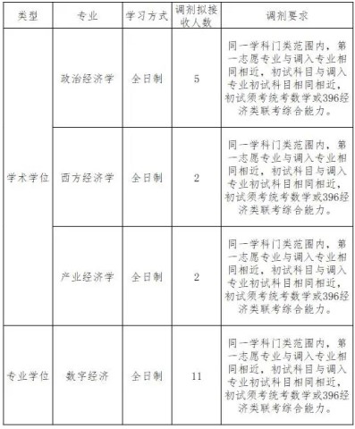 (1)政治经济学、西方经济学、产业经济学三个学硕专业可接收第一志愿报考经济类专业的相关考生。
