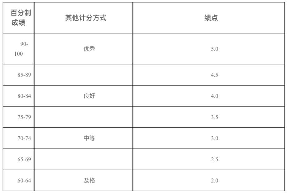 将一门课程考核成绩按上表的对应关系,转化为绩点后,乘以该课程的学分,即为该课程的学分绩点: