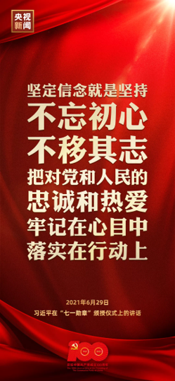 “七一勋章”金闪闪、沉甸甸,既是对为党和人民事业作出杰出贡献、创造宝贵精神财富的党员的褒奖,也是对全体党员在新时代坚定理想信念、践行初心使命、争做合格共产党员的激励。这样一个颁授仪式,对于我们每一个人来讲,都是一次精神的洗礼、思想的升华。