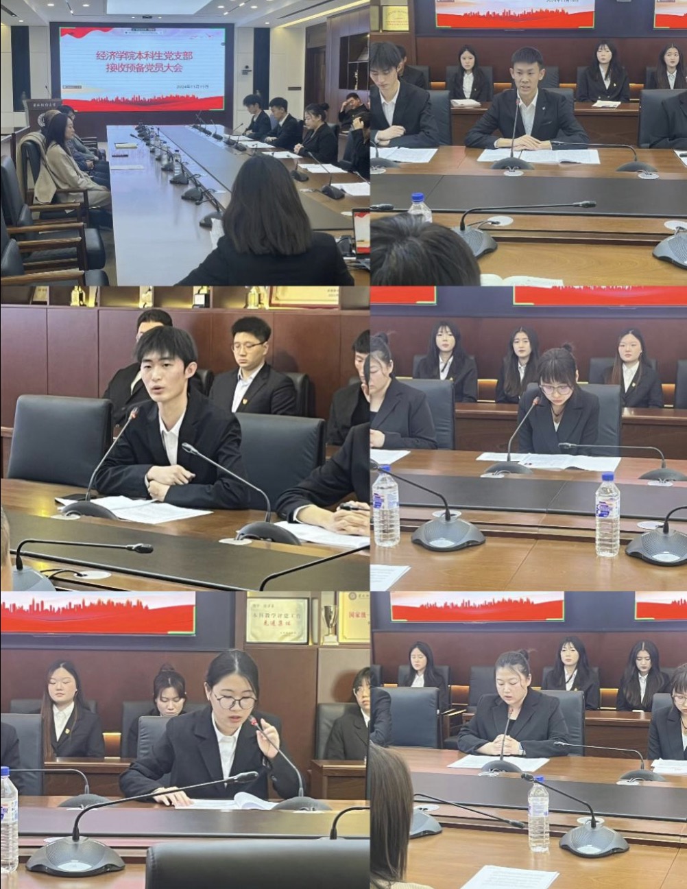 在预备党员纳新会议中,由谭程鹏、刘伊、王馨悦、于洋阳、张宇璐五名发展对象宣读入党志愿书,向大会汇报自己对党的认识和入党动机。他们对党的认识深刻而真挚,字里行间满是对党的崇敬与向往。他们将党的光辉历史、伟大使命融入自己的理解,清晰阐述入党动机,皆源于对国家发展成就的敬仰、对人民幸福的关切以及为共产主义事业奋斗的决心。入党介绍人谷硕老师对他们情况的介绍,证明每一位积极向党组织靠拢的同志都经历了严格的考察与培养。他们在学习、生活和社会实践中展现出的优秀品质与坚定信念,是成为预备党员的坚实基石。经支部大会无记名投票表决,全体成员同意接收他们为中共预备党员。这不仅是他们个人政治生命的崭新起点,也是党组织蓬勃发展的生动体现。