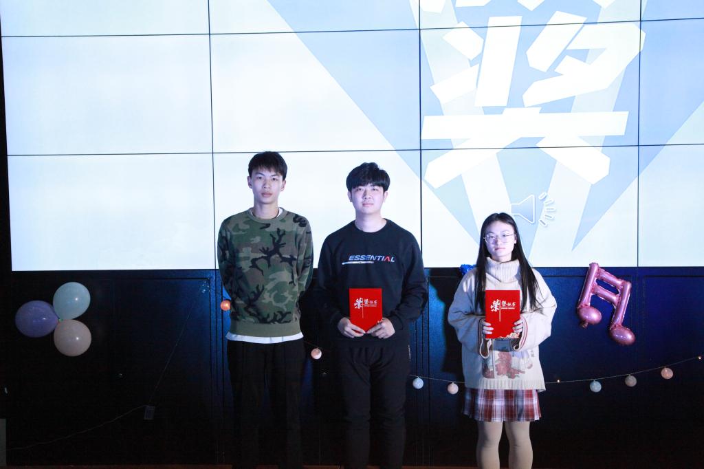 获得一等奖的是王兆丰同学。由永利yl23411第26届文艺部负责人李思慧为他颁奖并合影留念。