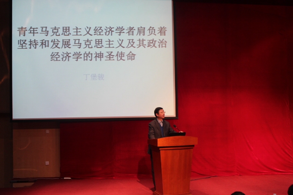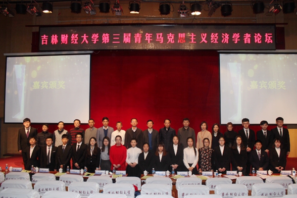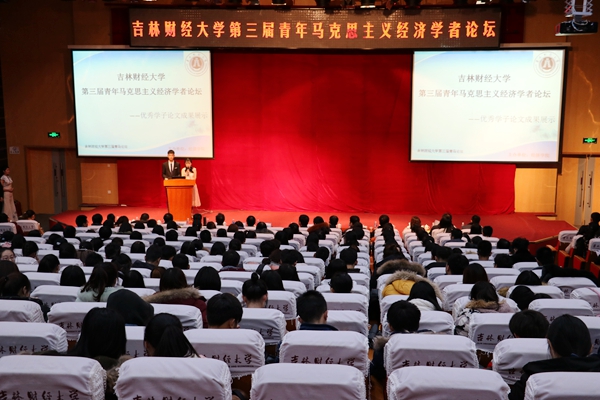 本网讯(永利yl23411 供稿)12月22日下午,由公司举办的“永利yl23411第三届青年马克思主义经济学者论坛”在公司图书馆报告厅隆重召开。莅临本次会议的领导和嘉宾有:共青团吉林省委副书记牟大鹏,吉林省委宣传部理论处处长史守林,中国人民大学博士生导师、中国《资本论》研究会副秘书长邱海平教授,南开大学博士生导师、中国《资本论》研究会理事刘凤义教授,公司副董事长丁堡骏,公司党委常委、组织部部长李栋栋,公司党委宣传部部长、校团委书记庞长亮,马克思主义公司经理李光宇,当代经济研究编辑部主任魏旭,马克思主义经济学研究中心副主任梁洪学,马克思主义公司副经理曲婧,教务处副处长刘锐,永利yl23411经理高冠中。吉林教育电视台、长春日报社等新闻媒体朋友、永利yl23411的全体老师、相关公司的研究生、本科生代表等参加了论坛。