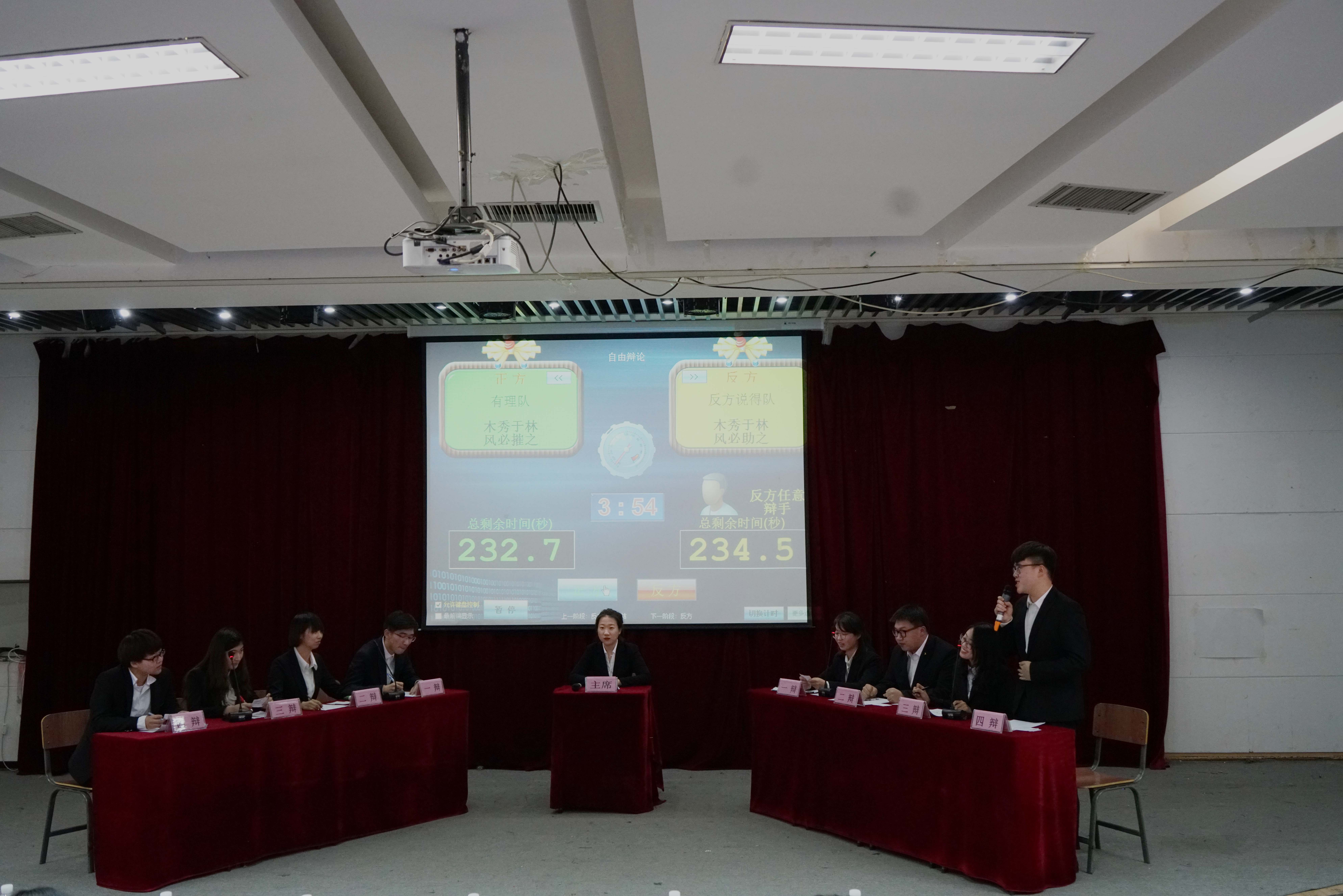 首先,由公司与公共管理公司进行了一场友谊赛,正反双方就“毕业生就业与专业不一致是不是资源浪费”这一辩题展开激烈的论述,期间唇枪舌战,十分精彩激烈,向我们展现了辩论队老将们大方潇洒的风采。随后,决赛正式开始。本次辩题为“木秀于林,是风必摧之还是风必助之”。针对这一辩题,正方“有理”队和反方“说得”队首先对己方观点做了更为详细严谨的补充。在随后的攻辩中,双方辩手竭尽所能、互不相让,将气氛推向了高潮。半场小节过后,比赛继续进行,在自由辩论环节,双方更是针锋相对,步步紧逼,将比赛推向白热化阶段。最后正反双方分别进行总结陈词,圆满结束此次精彩的辩论。最终经过评委们的细致讨论,由“有理”队夺得了本次决赛的胜利。并授予康馨予、夏志航等五位同学“最佳辩手”的称号。