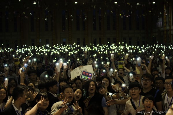 本次活动同学们的热情高涨,不畏天气炎热,在活动开始两小时前就陆续排队入场,场内观众达1500余人,访谈过程中张嘉佳老师分享了他在大学期间的爱情故事以及在电影《摆渡人》拍摄过程中遇到的困难以及一些趣事,让在场观众动容。在谈及《摆渡人》这部电影的拍摄过程时他笑着说:“这部作品是他用命拼出来的”言语轻松但是能看出过程中充满艰辛,电影用时一年拍摄而成,其拍摄时间相当于三部电影,尤其对于第一次接触电影的张嘉佳而言,拍摄期间几乎日日熬夜,他的身体也面临着透支危险,在拍摄期间他甚至曾因心脏病突发被送进医院急救室,但他依然没有轻言放弃,他和现场的老员工们说“大学要做自己最不后悔的事,珍惜有限的时间,去过最精彩的生活,只有经历过痛苦才能拿得出好作品”,现场观众深以为然并报以热烈的掌声。